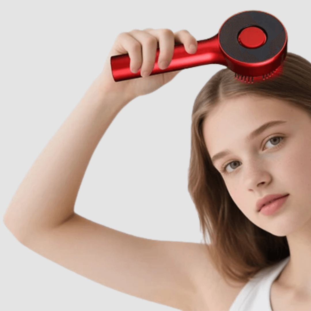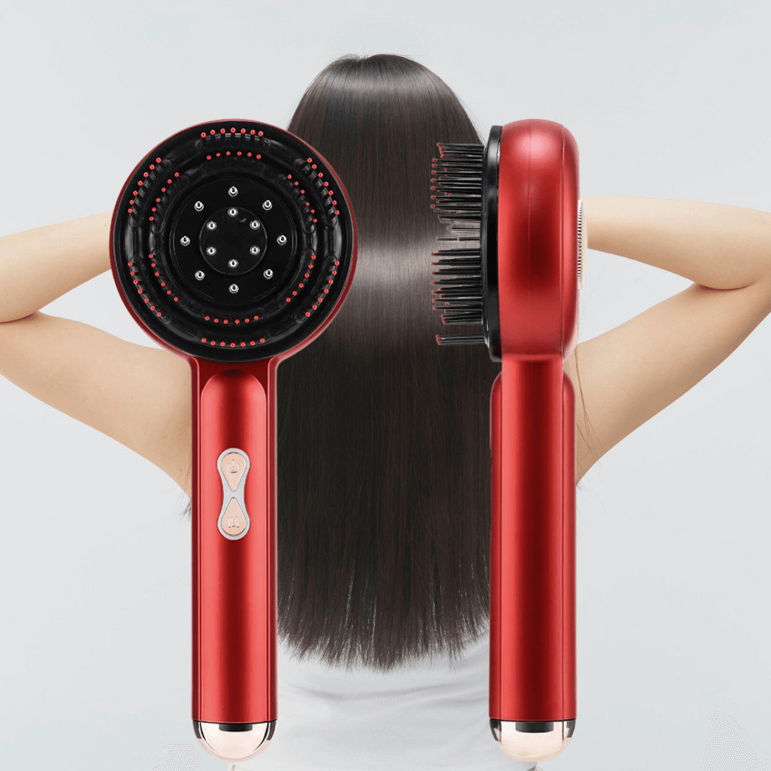 La spazzola massaggiante con micro-corrente, LED terapia e serbatoio integrato che stimola la crescita dei capelli, rilassa il cuoio capelluto e ti regala un momento di puro benessere ogni giorno.
